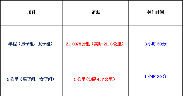 为了保证参赛运动员比赛安全、顺利,比赛期间比赛路线各段设关门时间。参赛者在规定的关门时间内,未跑完对应距离的参赛者须立即停止比赛,退出赛道,以免发生危险。