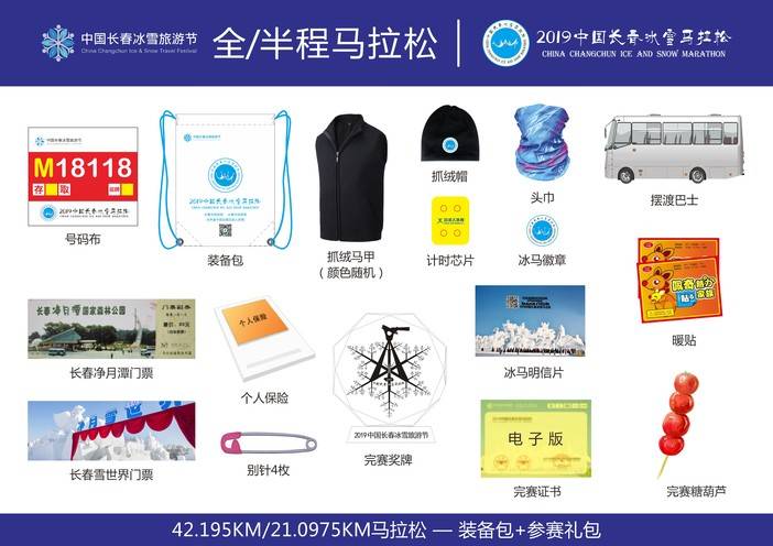 | 全程马拉松 | 1个/人 | 4个/人 | 1个/人 | 1件/人 | 1顶/人 | 1条/人 | 1个/人 | 1个/人 |