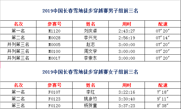 ——徒步穿越赛20公里男子组、女子组成绩公布——