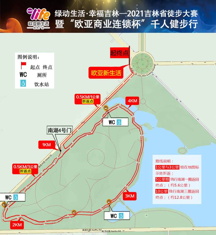 7.所有组别当天凭号码在欧亚新生活门前集合检录;(凭报名手机电子扫码自行检录)