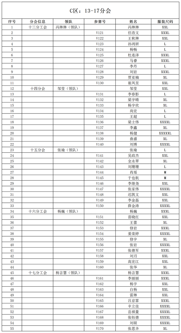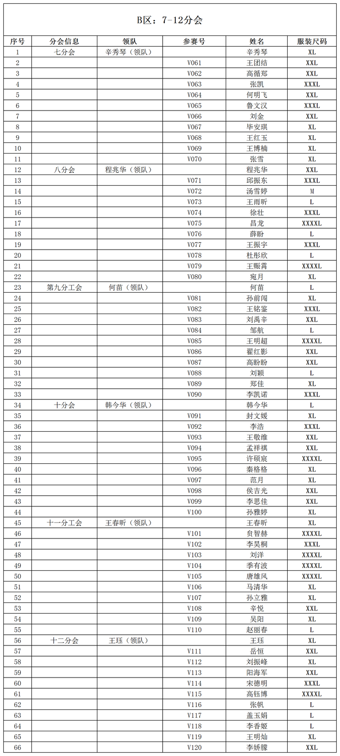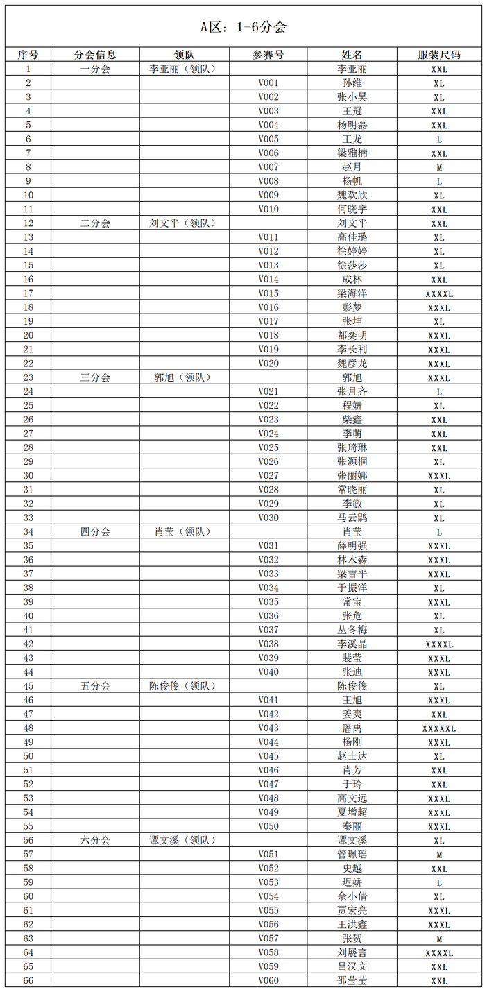 注意:服装按照提交的名单填报发放,现场发放区不允许更改尺码,如需调换可个人自行协商调换。