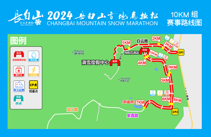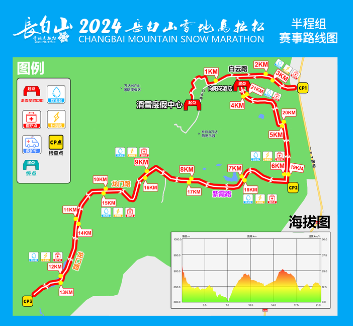 | 补给站 | 3KM | 6KM | 9KM | 12KM | 15KM | 18KM | 21KM | 完赛补给(北岸餐厅) |