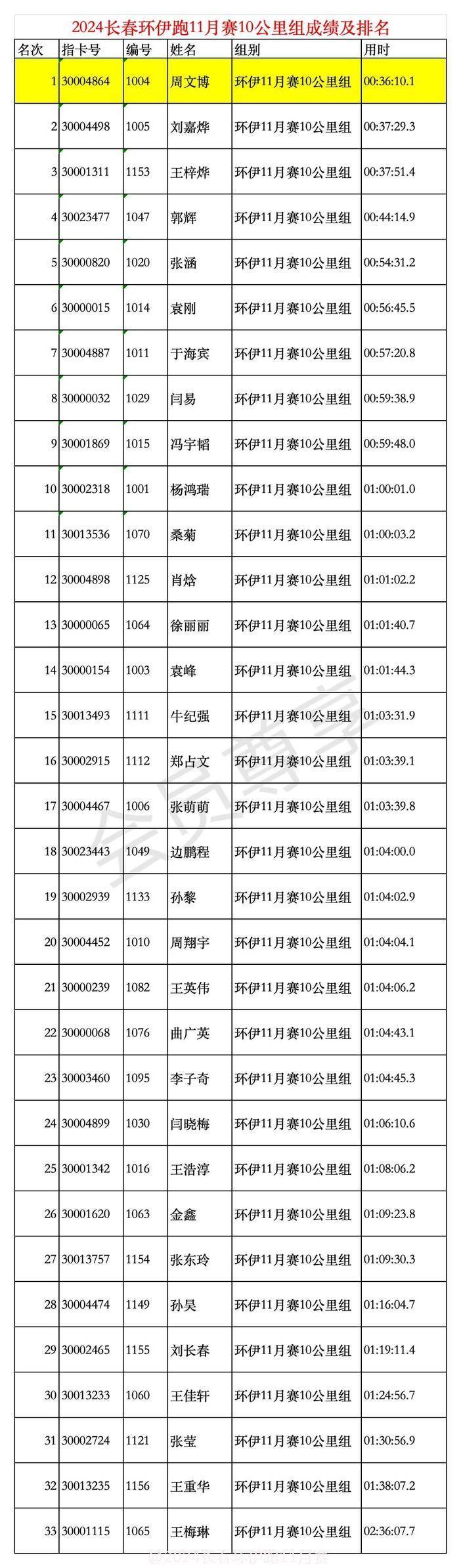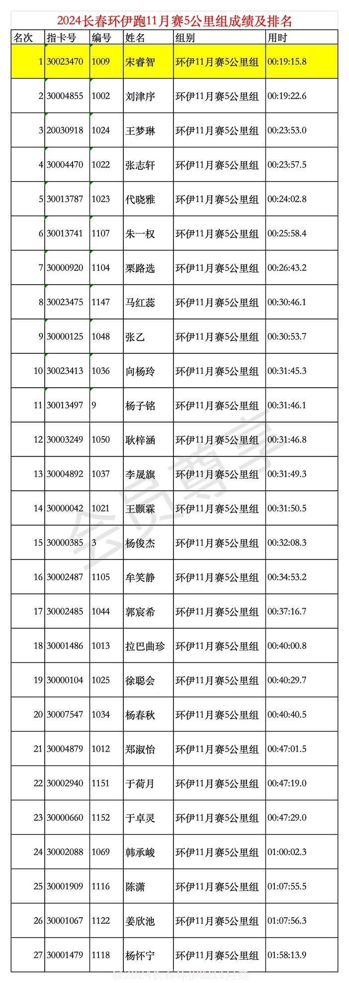 - 2024长春伊通河环伊跑11月赛于11月23日在伊通河畔南溪湿地公园圆满结束,164人参与活动并成绩有效;所有参赛选手均安全完赛!本着响应国家体总全民健身号召,提倡安全,健康跑步完赛理念,为更多跑步爱好者提供交流的平台与展示的空间,欢迎加入四季环伊,奔跑无限!