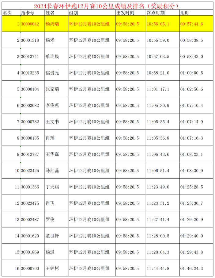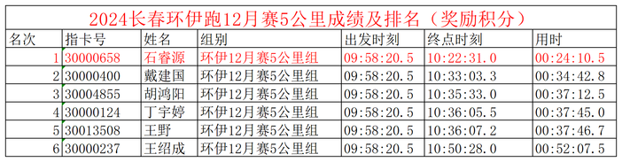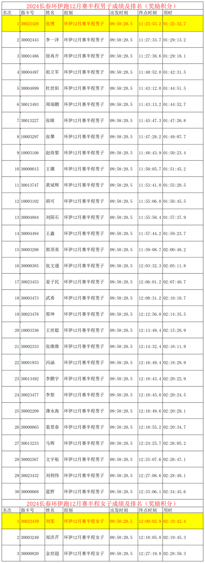 - 2024长春伊通河环伊跑12月赛于12月21日在伊通河畔南溪湿地公园圆满结束,55人参与活动并成绩有效;所有参赛选手均安全完赛!本着响应国家体总全民健身号召,提倡安全,健康跑步完赛理念,为更多跑步爱好者提供交流的平台与展示的空间,欢迎加入四季环伊,奔跑无限!