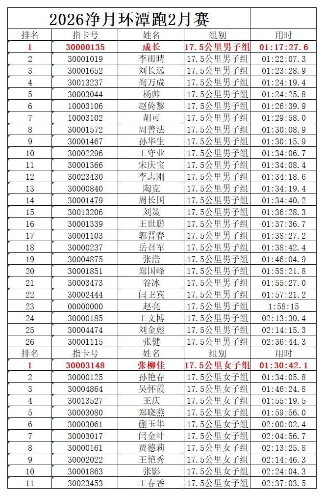 【游·成绩】2026长春净月环潭跑2月赛星耀皇榜发布!(电子证书,照片可下载)