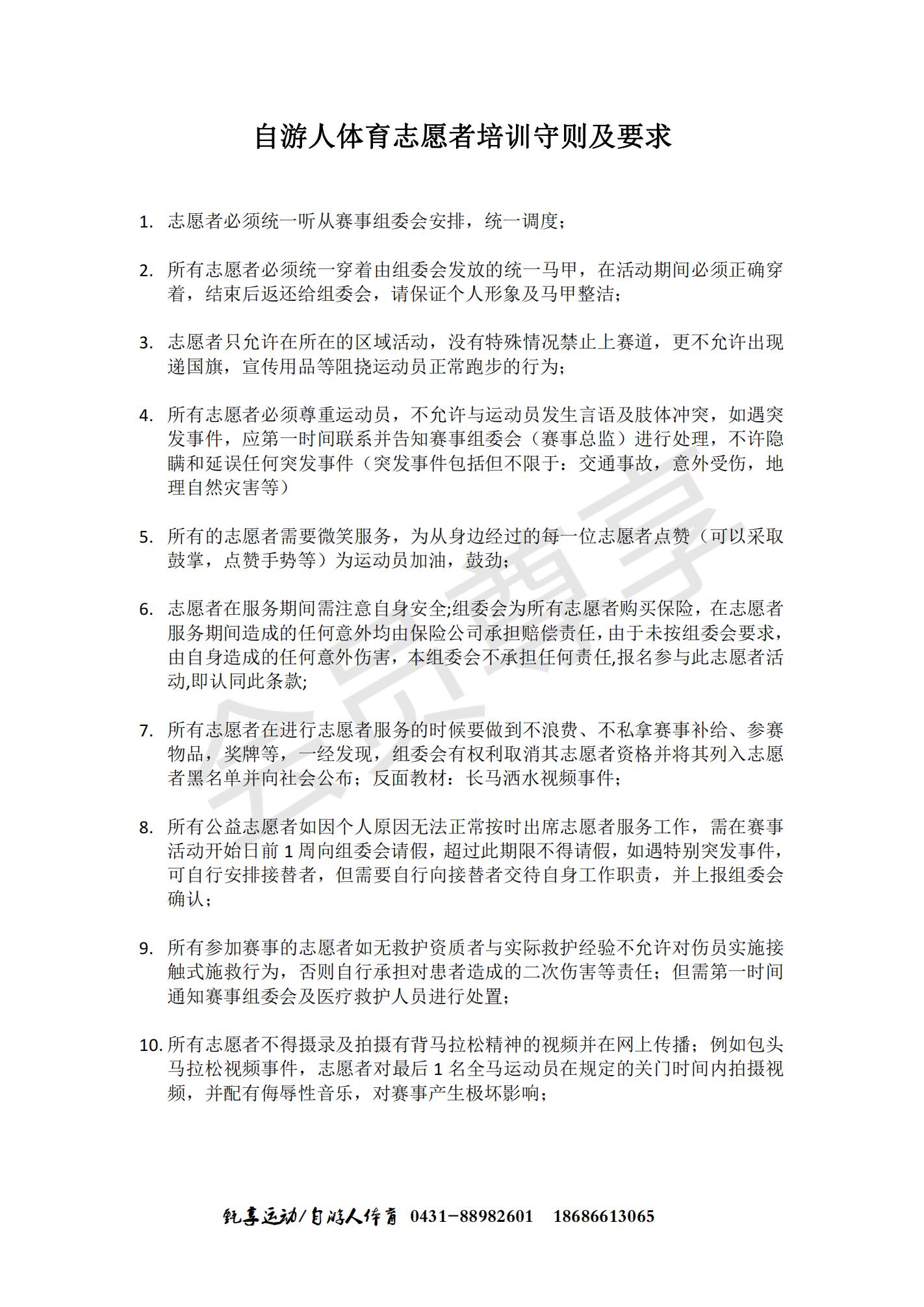 • 感谢您报名自游人体育志愿者并提供相应志愿服务,为了更好的对志愿者进行管理与提升服务,请在报名时确认您可以并遵守以下志愿者服务章程!