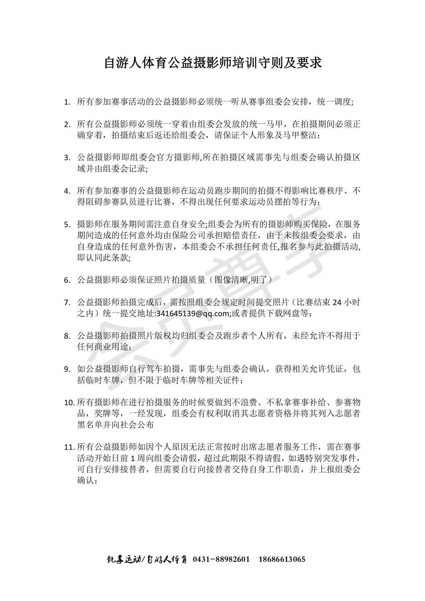 - 在开始注册前说明您已经通过了摄影师的前期网络报名流程,在正式为赛事服务前,请确保遵守以下守则及要求: