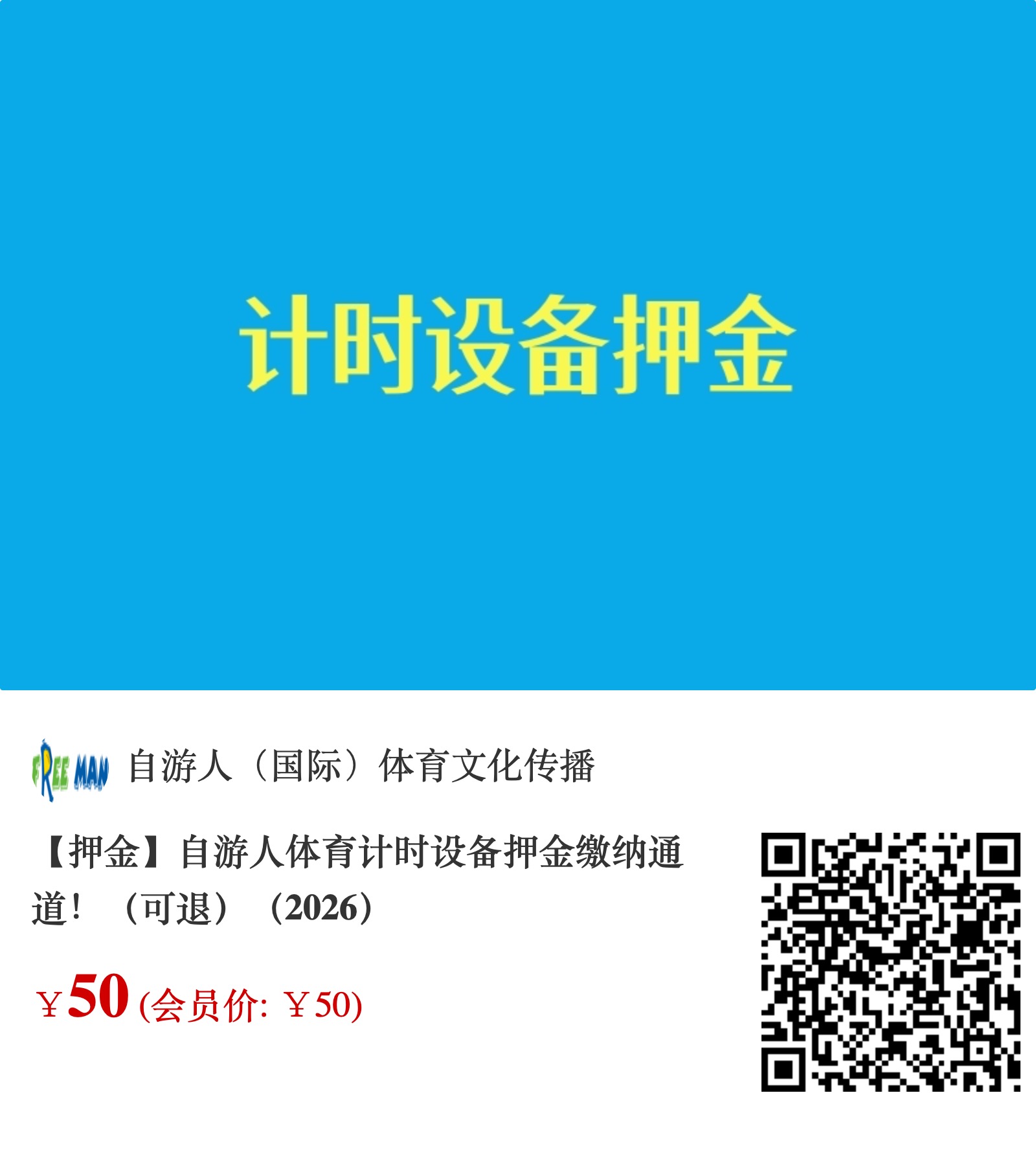 (2)除先前购买过计时手环外,其余所有人请到工作人员处领取计时指卡,并缴纳押金:50元/人,赛后交回,48小时押金返还原付款账户,请用手机扫码缴纳,不收取现金;领取后按下列操作即可完成赛事登记;押金缴纳通道