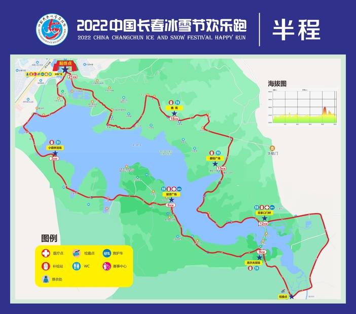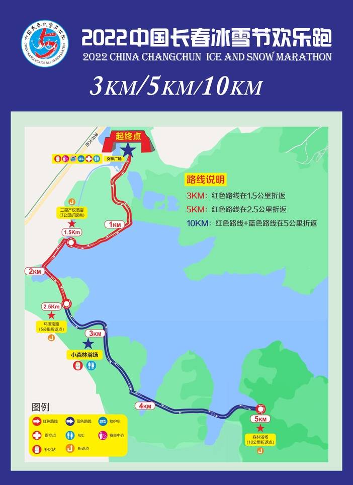 3.凭号码布人员可以进入园区,出发主场地在净月潭正门内女神广场,游客中心出发步行5分钟;