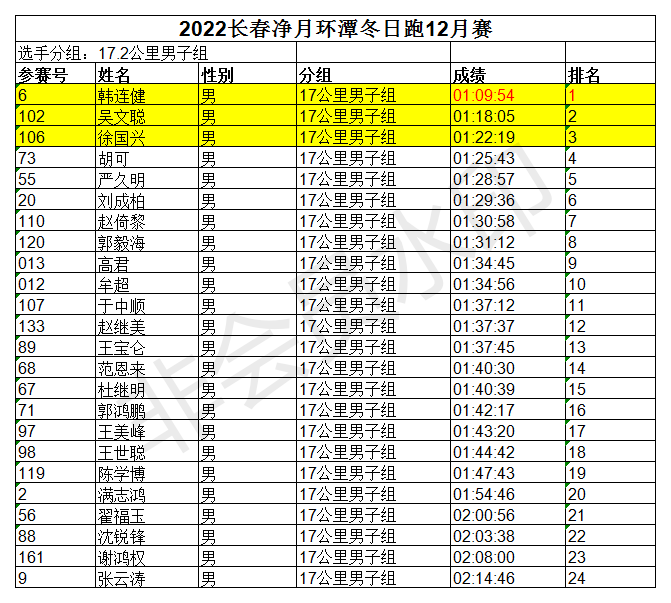 2022长春净月环潭冬日跑12月赛在净月潭国家森林公园举行,报名101人,实际出席:27人!