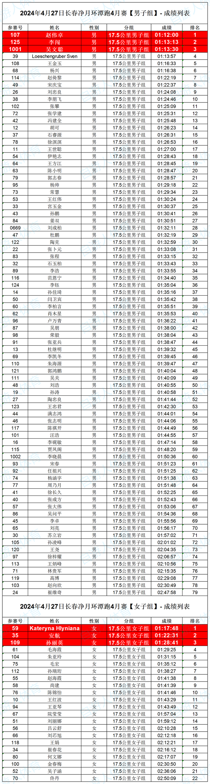 2024长春环潭跑4月赛于4月27日在净月潭国家森林公园圆满结束,共有101名选手成绩有效!所有参赛选手均安全完赛!本着响应国家体总全民健身号召,提倡安全,健康跑步完赛理念,为更多跑步爱好者提供交流的平台与展示的空间,欢迎加入星耀净月,环潭悦跑!