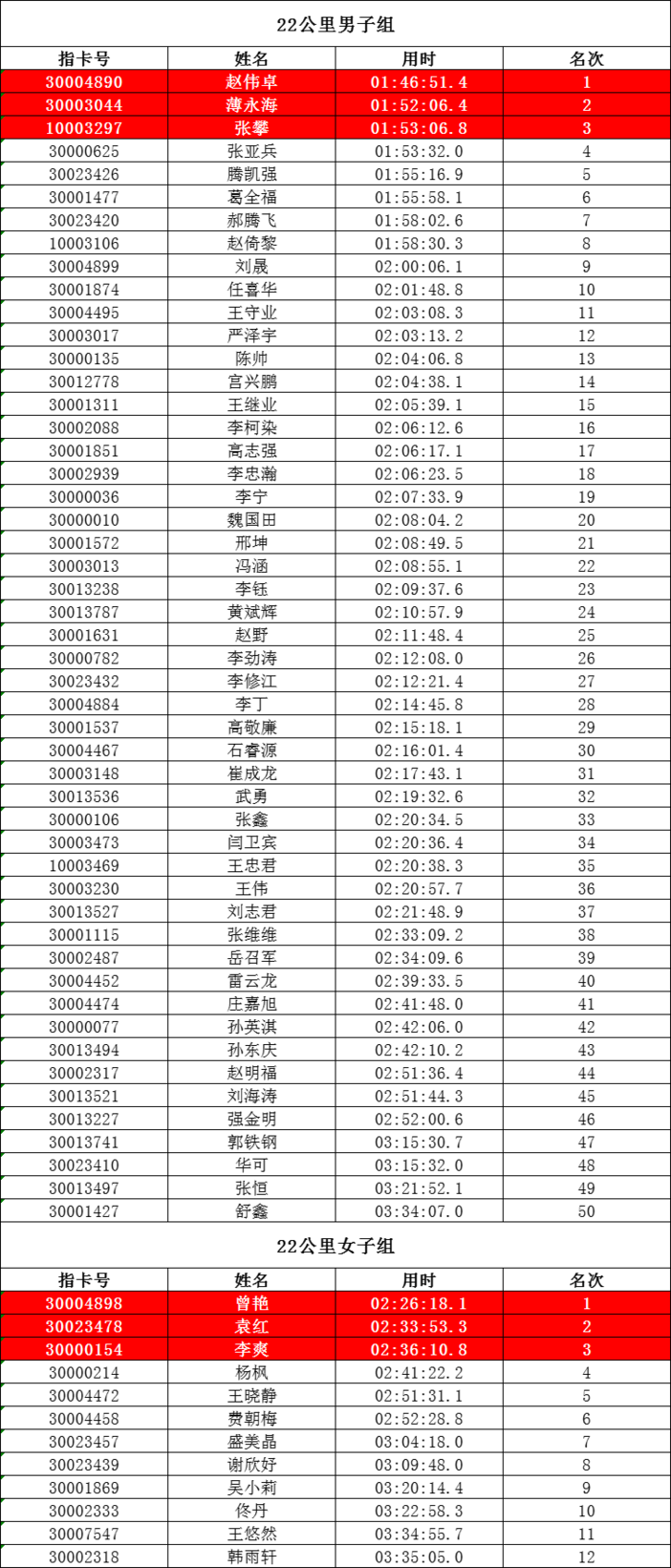 2025长春大环潭跑5月赛于5月11日在净月潭国家森林公园起点,在美丽的富仁潭森庄圆满结束,62人参与活动并成绩有效;所有参赛选手均安全完赛!本着响应国家体总全民健身号召,提倡安全,健康跑步完赛理念,为更多跑步爱好者提供交流的平台与展示的空间,欢迎加入星耀净月,环潭悦跑!- 恭喜赵伟卓获得2025长春净月大环潭跑5月赛男子冠军,成绩:1:46:51.4;