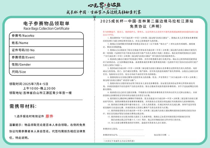 3.当天部分赛道及起终点封闭管理,参赛选后只能凭“号码布 ”进入;
