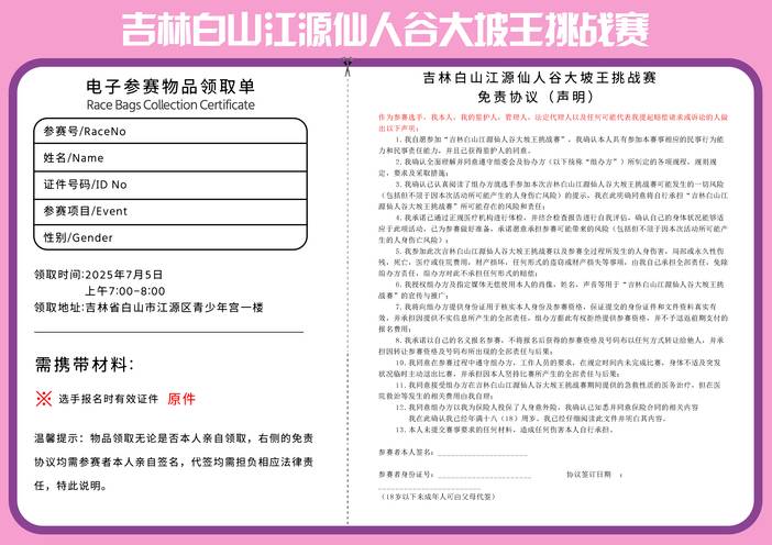 | 号码布(爬升图+联系方式) | 需(组委会) |
