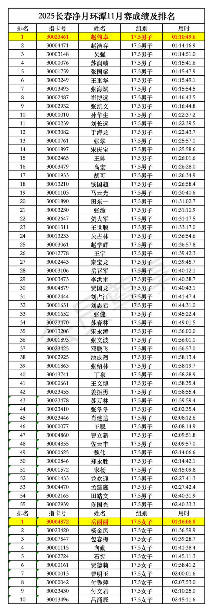 【游·成绩】2025长春净月环潭跑11月赛星耀皇榜发布!(电子证书,照片可下载)